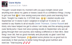 Derek Thomson is a body transformation specialist, having helped hundreds of clients to become slimmer, fitter, healthier and happier within themselves. He has been exercising himself seriously for 25 years now, and training clients for the last 7 years, having previously been a Physical Training Instructor with the Territorial Army. Derek is more than happy to be judged by the rezults achieved by the clients, and you can see from the before and after pictures on this site, plus the video testimonials, that Rezults produces the best transformations in Central Scotland, bar none.